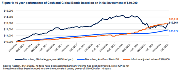 While cash rates may seem alluring, it is important to remember the distinct roles bonds and cash play in a portfolio. Cash is best reserved for short-term spending needs that require a guarantee as it will not provide the long-term capital growth and inflation protection of other assets.